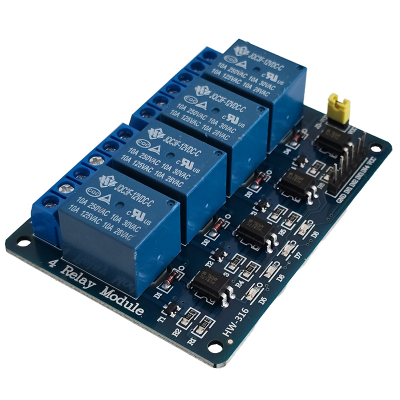ماژول رله 4 کانال 12 ولت با ورودی اپتوکوپلر (برد آبی)