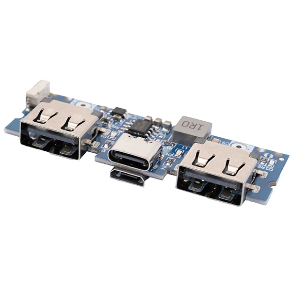 دو خروجی 2.4 آمپر و دو ورودی TYPE-C و MICRO-USB چهار LED نشانگر میزان شارژ با قابلیت اتصال NTC